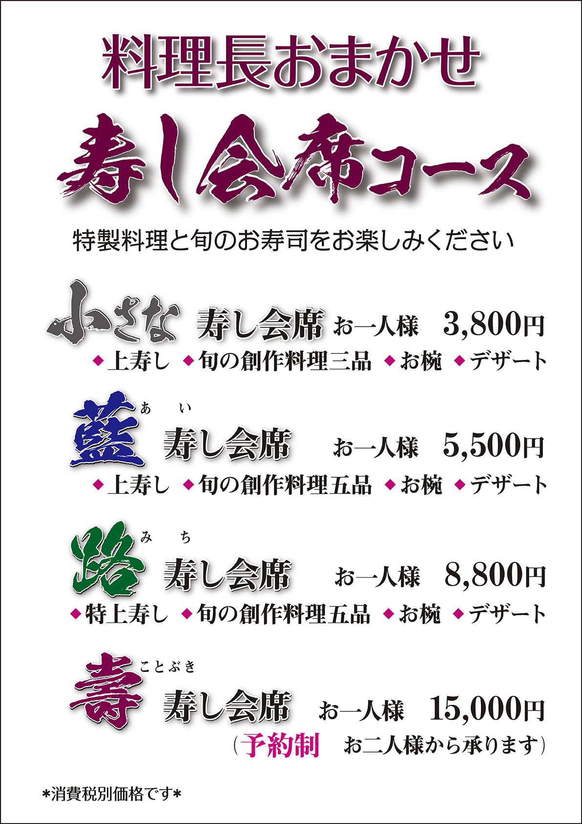 寿し半「藍路」からのお知らせ