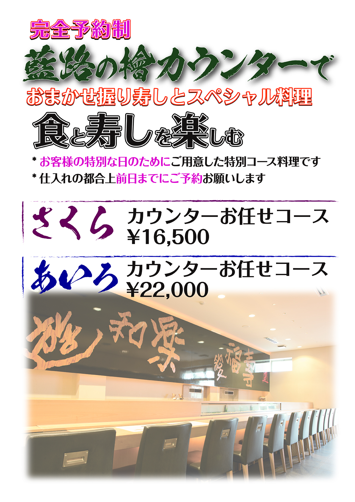 29Dec完全予約檜カウンターコースBy 割烹寿し半 「藍路」「和楽」お知らせ , …It takes about 1 minute(s) to read this content. 完全予約檜カウンターコースのご案内 寿し半藍路 完全予約制「檜のカウンターコース」です。 ぜひお試しください。 詳細は藍路のページへ About This Author割烹寿し半 「藍路」「和楽」Recent Articles2025年11月30日2025〜2026年末年始のご案内お知らせ2025年11月1日寿し半藍路メニュー更新お知らせ2025年5月24日季節の一品お知らせ2025年1月7日2025恵方巻お知らせ2025年1月1日あけましておめでとうございますお知らせ割烹寿し半 「藍路」「和楽」's articles
